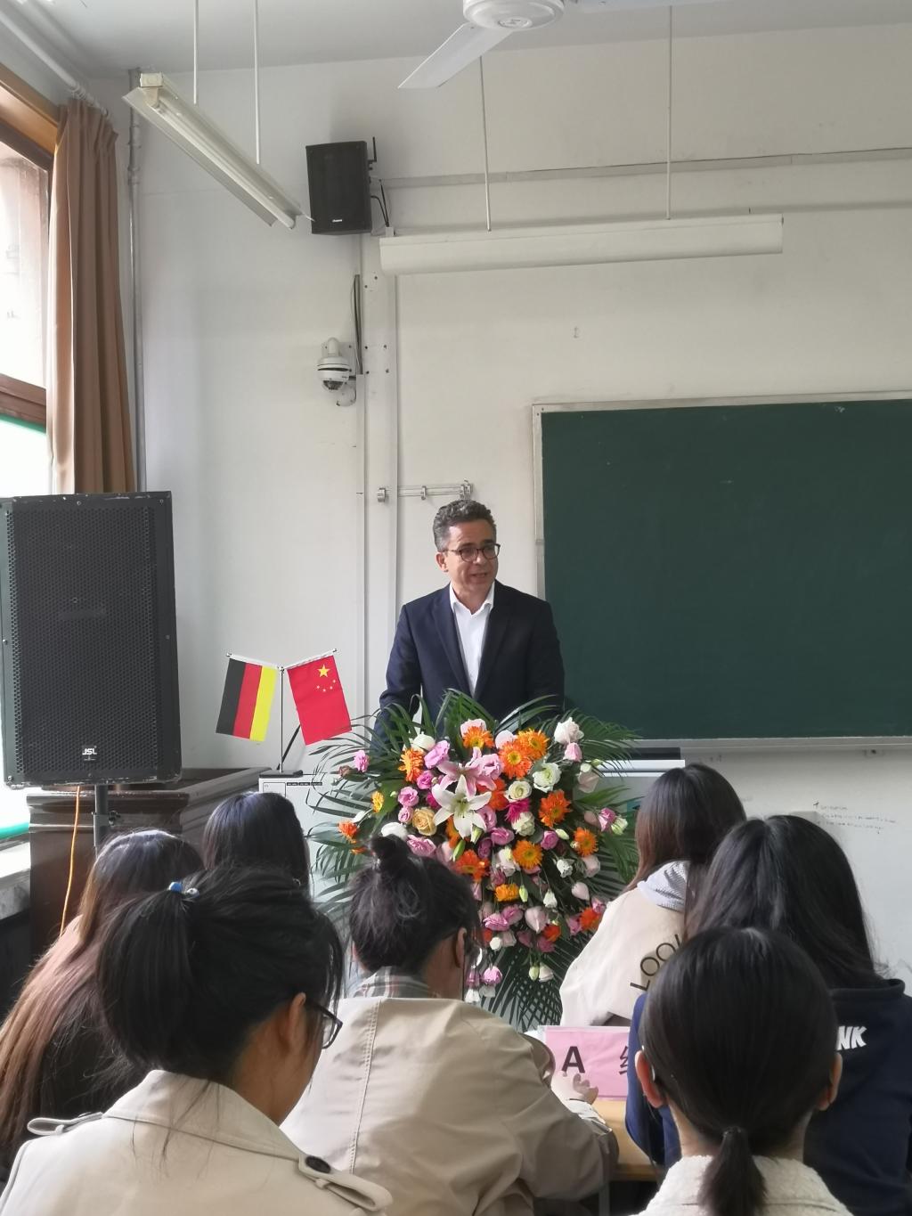 11月7日下午,禁漫 与德国安顾集团共同举办的保险数字化主题讲座在舜耕校区教学楼3306举行。德国安顾国际股份公司董事会成员、德国安顾集团大中华区首席执行官、德华安顾人寿保险公司副董事长Jürgen Schmitz(思勇明)先生作为特邀客座教授莅临本次讲座,德国安顾集团北京代表处首席代表朱航、德国安顾集团济南代表处代表王奇、禁漫 院长闫庆悦、副院长刘素春、以及50余名研究生共同参加讲座。本次讲座由副院长刘素春教授主持。