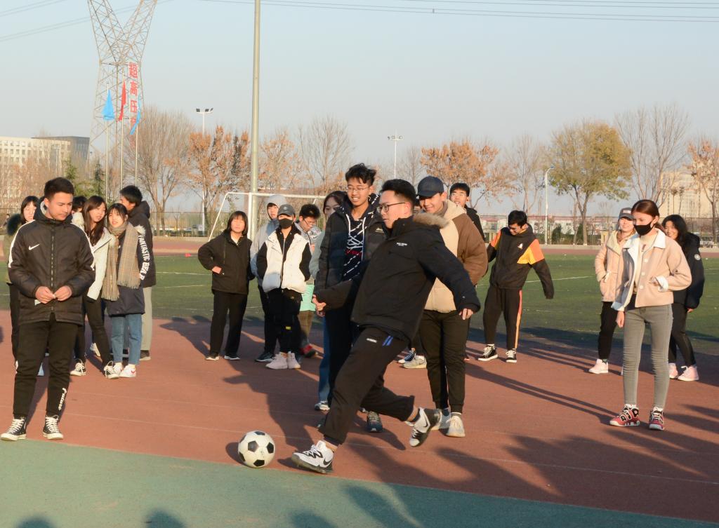 划破寒风,足球进入九宫格中,这是技术的较量,更是心态的考验。球进了!五分!一阵喝彩与欢呼爆发出来,他们兴奋的拥抱,班级的荣光掌握在他们手中。