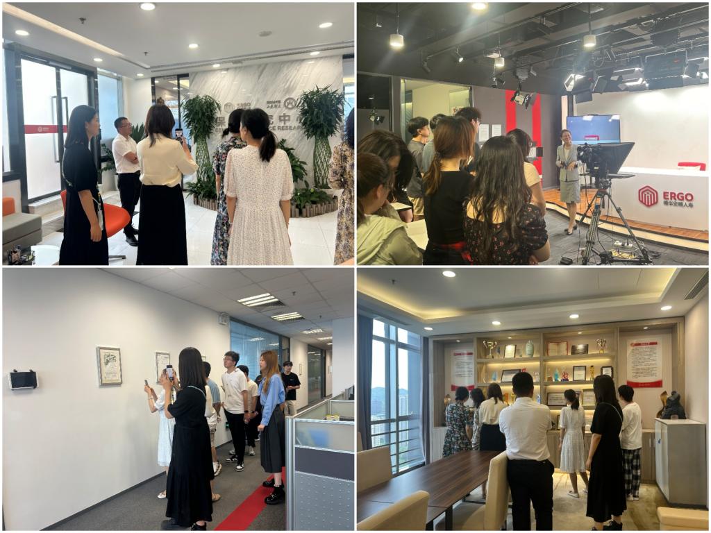 随后,汤圆和郑开武带领学院师生参观公司,同学们近距离了解各部门职能,沉浸式感受禁漫,为未来职业发展奠定了认知基础。此外,师生一行还参观了山东财大-德华安顾人寿保险研究中心,了解校企联合开展课题研究、人才培养的创新成果;在德华安顾人寿中央演播室,工作人员展示了现代保险企业在品牌塑造与数字化传播领域的创新实践。