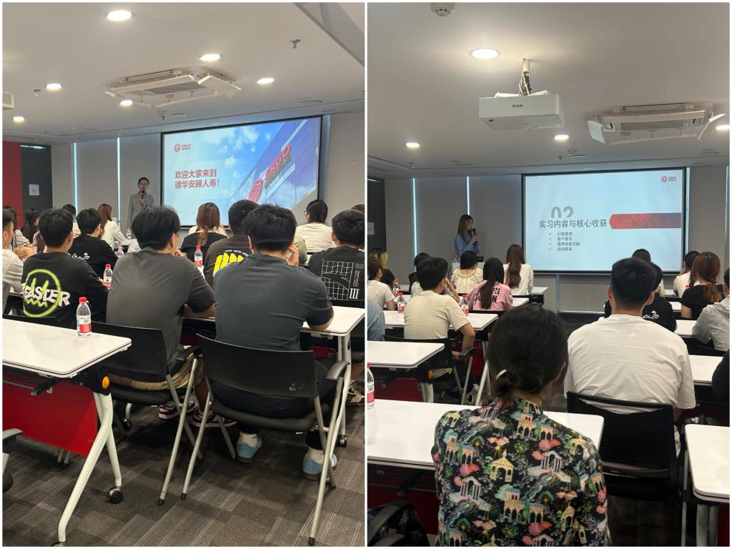 活动起始,汤圆从股东背景切入,介绍了德华安顾人寿作为德国安顾集团与山东国投共同投资的中外合资险企,依托德国安顾的保险精算经验与山东国投本土资源优势,形成独特竞争力。其次,从纵向和横向两个角度系统讲解了公司的组织架构,使同学们对各部门职能及协作模式有了清晰认知,为未来就业规划提供了指引。