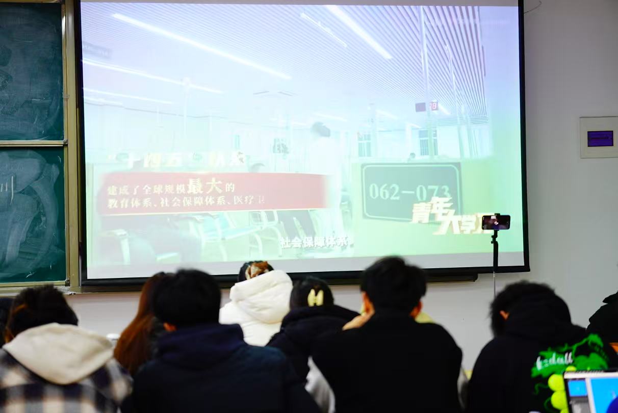观看过程中,同学们全神贯注,边听边思,线上参与的团员也通过平台实时互动,表达对视频内容的触动,营造出“云端共学、隔空共鸣”的良好氛围。大家在红色历史中领悟了先辈精神,在时代发展中坚定了责任信仰。