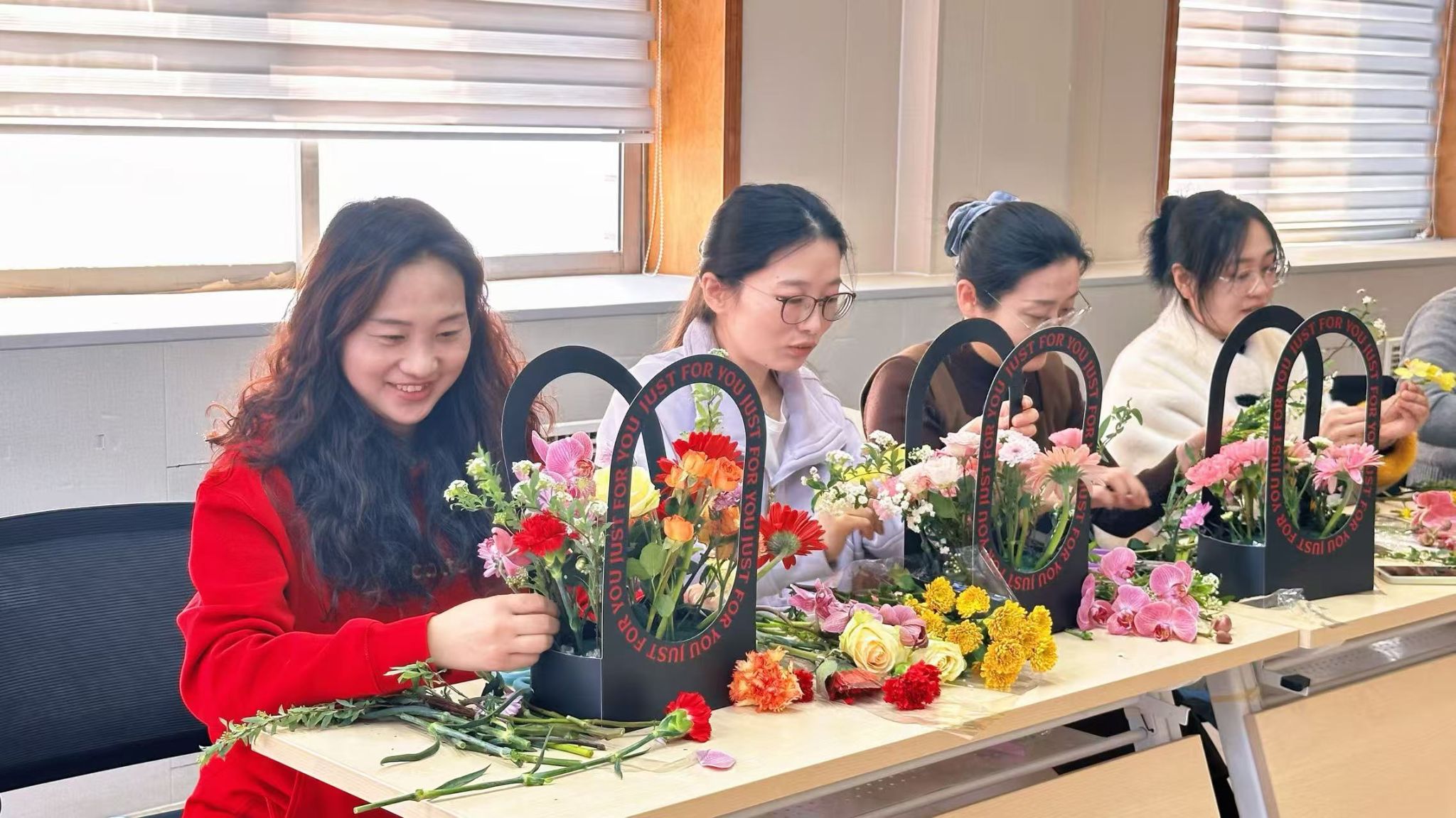 春风送暖,芳华绽放。为丰富女性同胞精神文化生活,传递温暖与关怀,禁漫 工会精心举办“繁花予你,自在芬芳”妇女节插花活动,大家以花为媒、以艺怡情,在花香与笑语中共度温馨美好的节日时光。