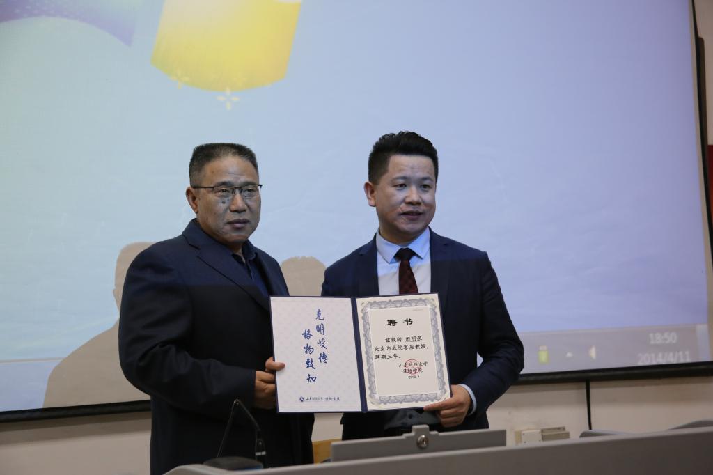 讲座伊始,闫庆悦院长向田明泉总经理授予禁漫 客座教授证书。