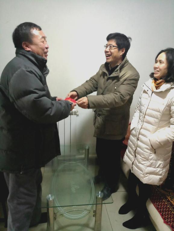 在学生家中,朱传武书记首先代表学校和学院向困难学生家长发放600元慰问金和花生油、米、面等生活必须品,为学生送去关心和温暖。随后,朱书记与学生家长和学生本人进行了亲切交谈。在谈论到学生专业时,朱书记从保险专业的学科设置、就业前景和保险行业发展对人才的需求等方面耐心地向家长加以介绍,增强家长对学校和专业的认同感。在了解到学生想通过考取研究生提升自己的专业水平时,朱书记细致地向学生分析了近几年考研情况,勉励学生认真学习、积极准备、多向考上的学长学姐取经、努力考上理想学校。张书记则从保险和精算专业在考研时注意的问题入手,鼓励学生根据自身的实际情况和学业特长选择适合自己的考研专业和学校。家长和学生本人对学院领导和老师们的关心和帮助表示感谢,同时学生也表示今后一定努力学习,不辜负老师和父母的期望。