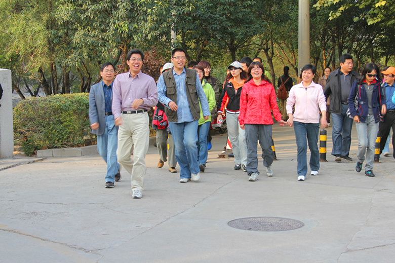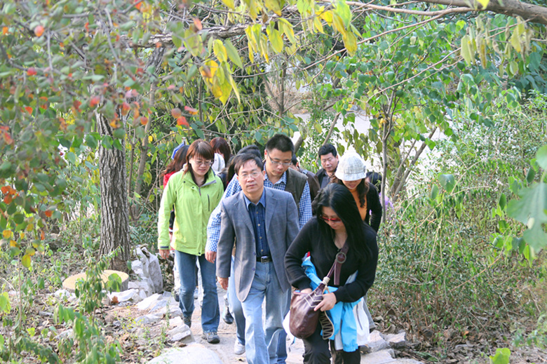 工会在舜耕校区组织秋季登山活动,教职工和学生代表共40余人登上了金鸡岭。