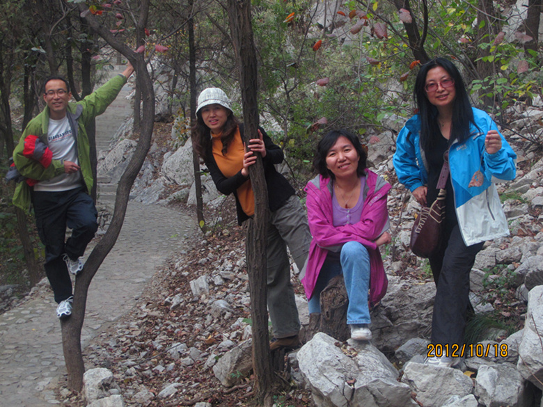 深秋季节的金鸡岭,山麓沟壑处红叶似火,景色迷人。山中曲径交错,草木层叠,碎石嶙嶙。一进景区,清新的空气便扑面而来,绿树、野花、点缀在枝头红色的山枣,山间还不时会传来几声鸟鸣,让每个人都感受到了大自然的魅力。登山途中,大家有说有笑,一边欣赏着大自然美景,一边谈天说地。有的老师疾步如飞,勇于争先;有的老师拾级而上,两两并肩,交谈而行,时而驻足欣赏热心山友雕刻的摩崖题刻;有的老师频频举起手中的相机,记录下沿途的美景,老师们的身影也成为了镜头中最靓丽的色彩。大家完全忘记了平日工作的辛苦和此时登山的疲劳,处处其乐融融,洋溢着欢声笑语。