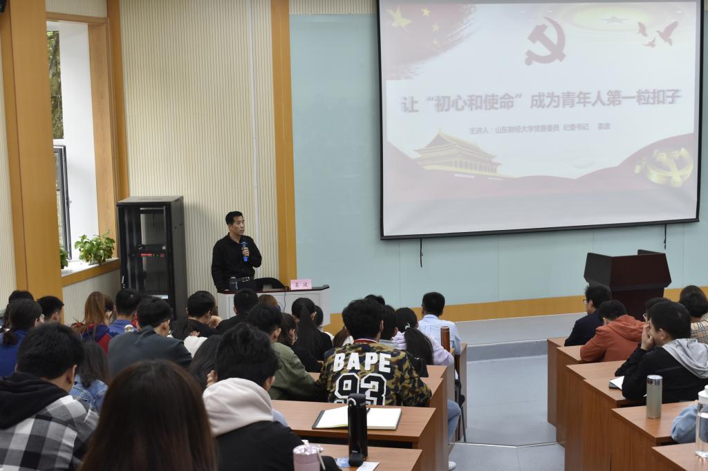 10月24日下午,学校党委委员、纪委书记姜波以“让‘初心和使命’成为青年人第一粒扣子”为主题,在舜耕校区第三阶梯教室为禁漫 、体育学院150多名学生党员、党员发展对象、入党积极分子上了一堂生动的党课。