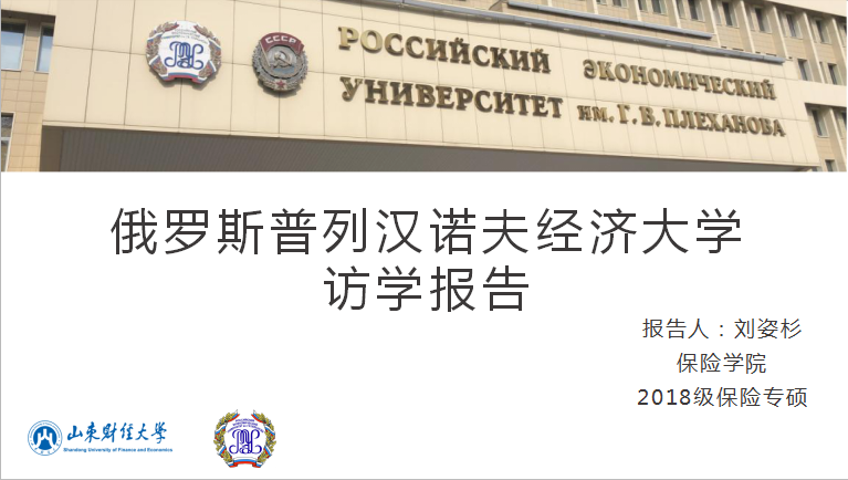 交流会上,刘姿杉介绍了申请优秀研究生国(境)外研修交流项目的要求及流程,同时,介绍了俄罗斯普列汉诺夫经济大学的学校概况、教学方式和衣食住行等方面内容。她表示,俄罗斯普列汉诺夫经济大学对国际交流学生实行全英文授课,以CFA教材为主要授课内容,授课方式灵活,注重师生交流互动。另外,教学及住宿环境良好,能够满足各国学生在学习及生活上的需求;学校位于莫斯科市中心,周围具有较多风景名胜,方便同学们在学习之余感受当地的风土人情。刘姿杉感谢学校和学院提供了此次赴俄访学的宝贵机会,此次经历不仅让她学习到了国际化的专业知识,锻炼了辩证思考的能力,对问题的认识更加深刻;而且极大地开拓了视野,提高了生活自理能力,收获了宝贵的友谊。
