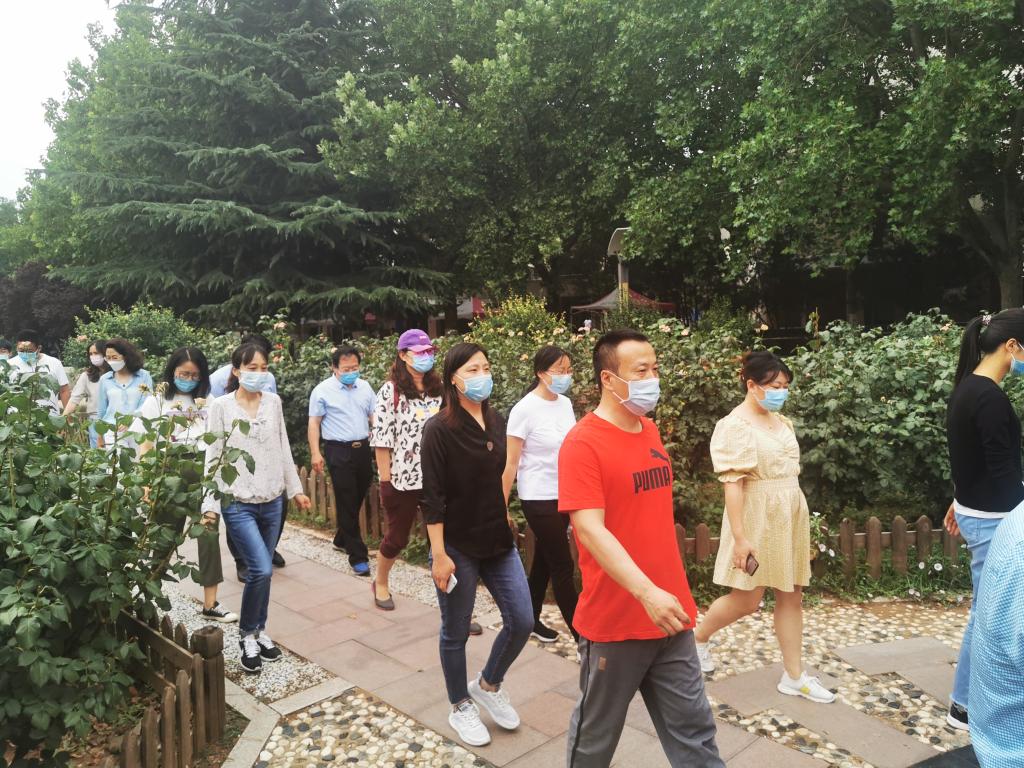 2020年6月18日下午4时许,全院教职工健步舜耕校区,从礼堂旁边的小花坛出发,沿着学校的林荫小道,游览校园的夏日风光。本次活动严格按照疫情防控护要求,参加人员全程佩戴口罩,保持间隔,老师们一边欣赏夏日中的校园,一边相互交流。因疫情沉寂了多半年的校园逐渐恢复了往日的生机,无论是楼间林下刻苦学习的身影,还是教室宿舍规范的秩序,都能感受到学校的活力与生机,看到了到这场抗击疫情的战役终将会取得胜利的信心与希望。
