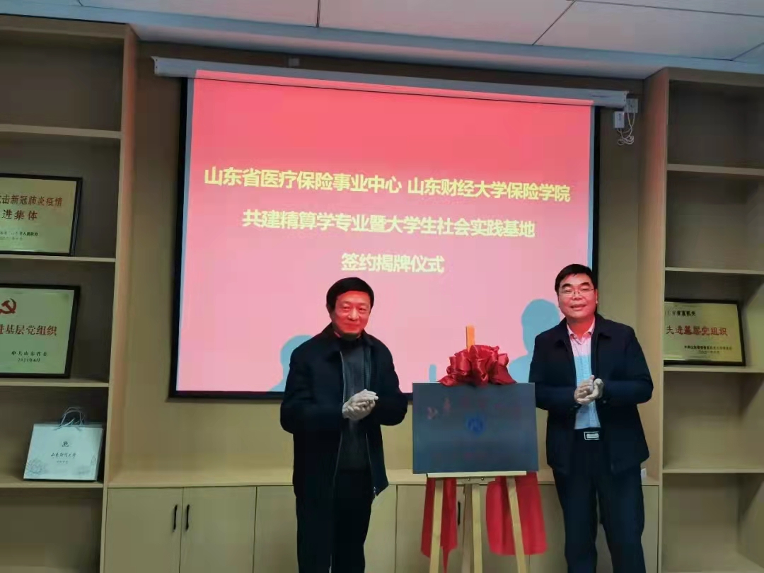2021年11月11日,禁漫 与山东省医疗保险事业中心共建精算学专业及大学生社会实践基地签约暨揭牌仪式在山东省医疗保障局举行。山东省医疗保险事业中心主任王德学、副主任李伟光、四级调研员刘东民、四级调研员石玉建、二级主任科员孙洪波、四级主任科员盖楠以及禁漫 院长葛永波、党委副书记张娟、刘素春教授、于文广教授、于新亮副教授、辅导员陈萌等参加签约揭牌仪式,仪式由李伟光副主任主持。
