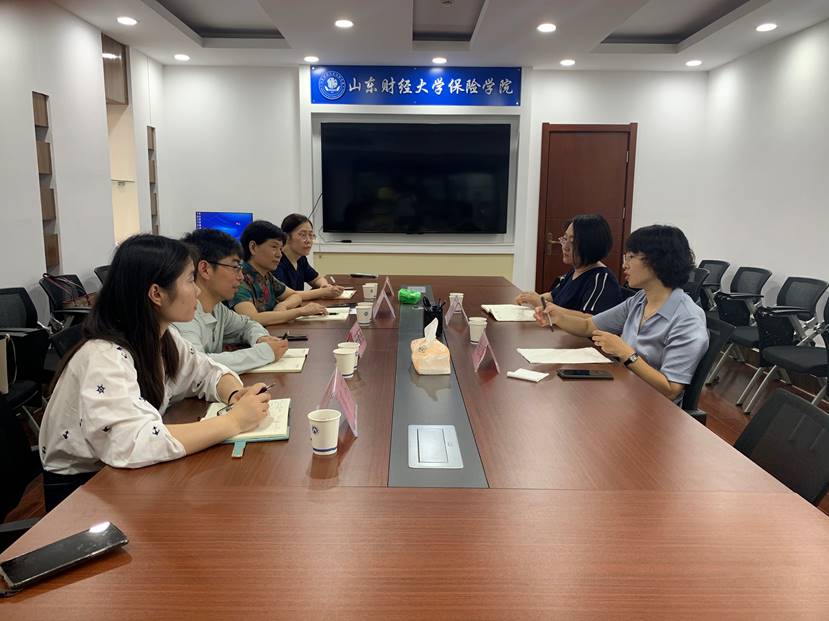 座谈会上,于新亮副院长对山东第一医科大学医疗保障学院李娟老师一行的来访表示热烈欢迎,对学院的基本情况,特别是开设专业、科室设置、人员情况等方面进行了介绍。孙秀清教授详细介绍了保险学课程建设的过程及经验,本课程在学院成立的11年里,从教材编写到课程团队建设,从思政引领到实践课堂的应用,从线上一流课程到线上线下混合课程建设,在改革中不断提升教学和教研水平。杜鹃副教授和廖芬老师分享了讲课和混合课程实践经验。双方就一流课程建设过程中的细节问题展开深入讨论,并就教学、科研、项目等方向的合作的可能性进行了探讨。