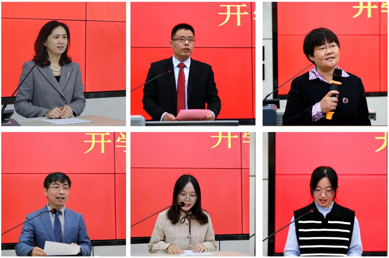 在校生代表2020级保险学硕严晓欢结合自己的学术经历,在心态、学习方法、人生目标方面给新生提出建议,引用“百舸争流,奋楫者先;千帆竞发,勇进者胜”,鼓励研究生新生志存高远、不懈奋斗。新生代表2022级保险专硕于欣冉代表全体新生发言,她表示,作为新时代新青年,在未来学习生活中会积极参与社会实践和志愿活动,脚踏实地、志存高远、把握机遇、追逐梦想,以实际行动践行“克明峻德格物致知”的校训。