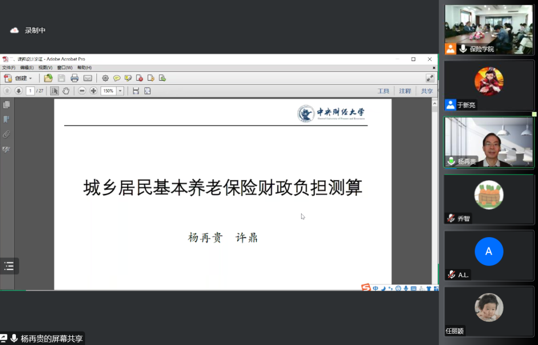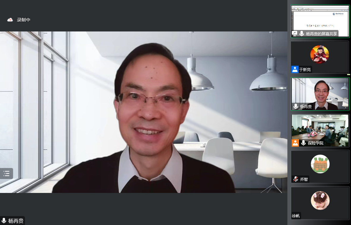 11月17日上午8:30,禁漫 名家讲堂第三期成功举办。讲座由禁漫 院长于文广教授主持,特邀中央财经大学禁漫 、中国精算研究院杨再贵教授做了主题为“城乡居民基本养老保险财政负担测算”的学术讲座。学院老师和硕、博士研究生等线上线下共计110余人参与了本次讲座。