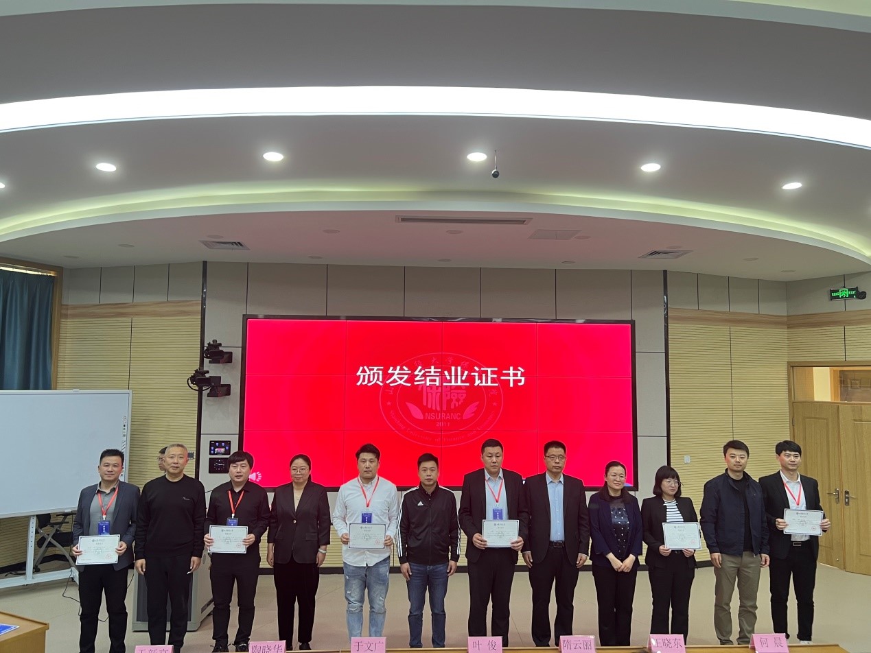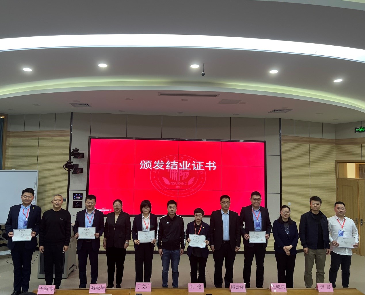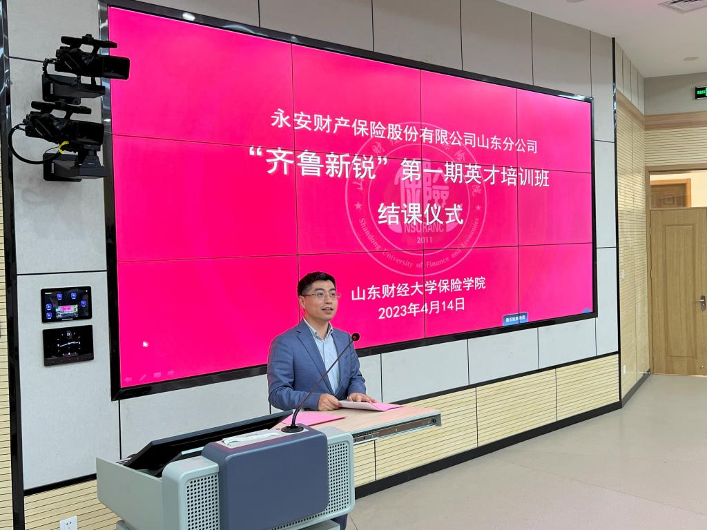 2023年4月14日下午,禁漫 举办的永安财产保险股份有限公司山东分公司“齐鲁新锐” 第一期英才培训圆满结课。50名培训班学员在为期5天的培训过程中系统性学习了包括二十大会议精神学习与解读、中国宏观经济形势、各类保险理论专业课和团队建设领导力培养等课程,并顺利通过结课考试,获得由禁漫 颁发的结业证书。永安财产保险股份有限公司山东分公司负责人、党委副书记叶俊,副总经理、党委书记隋云丽,副总经理、党委委员王晓东,总经理助理、纪委书记、党委委员何晨,禁漫 院长于文广,党委副书记陶晓华,以及本期培训班全体50名学员参加仪式。仪式由禁漫 副院长于新亮主持。