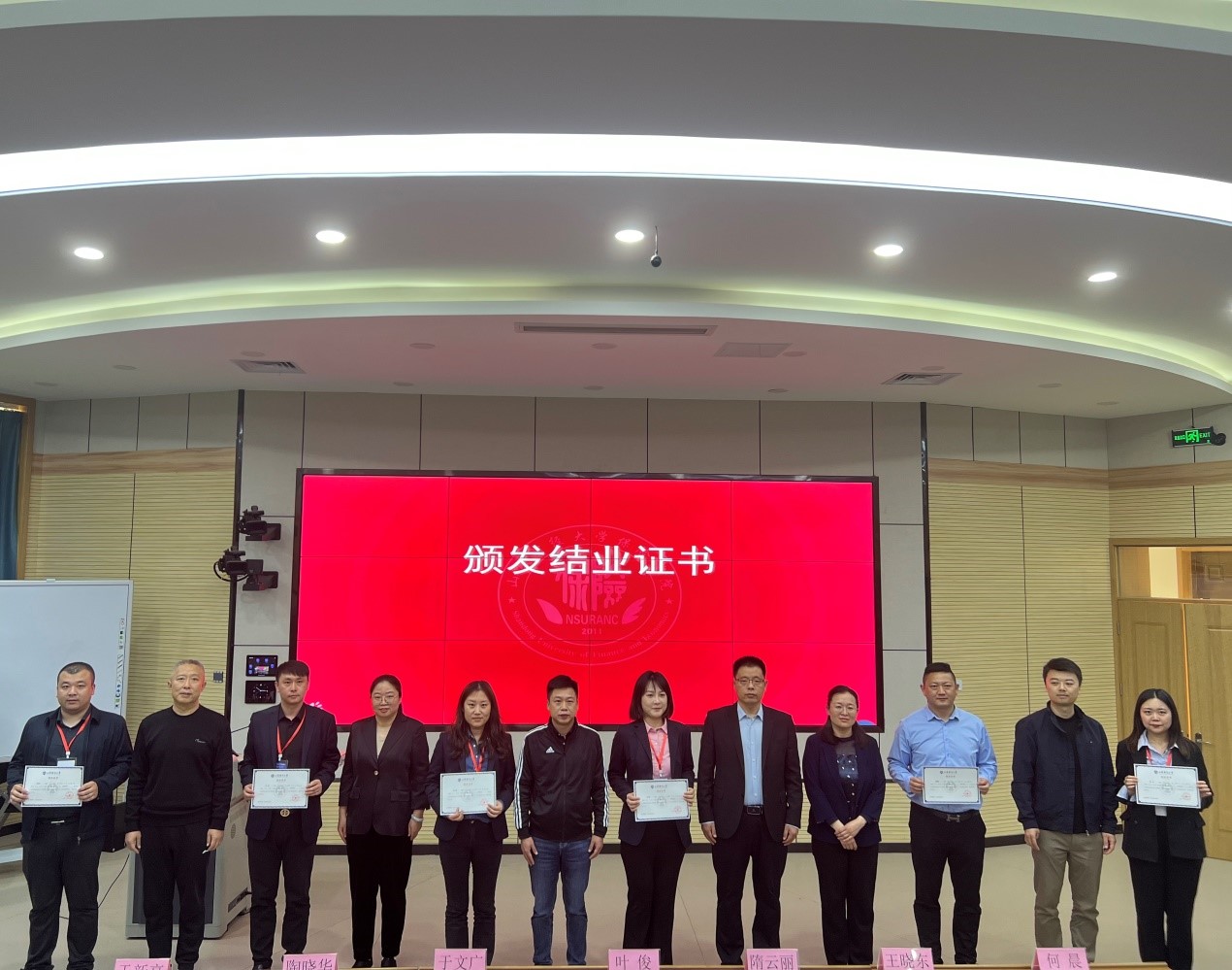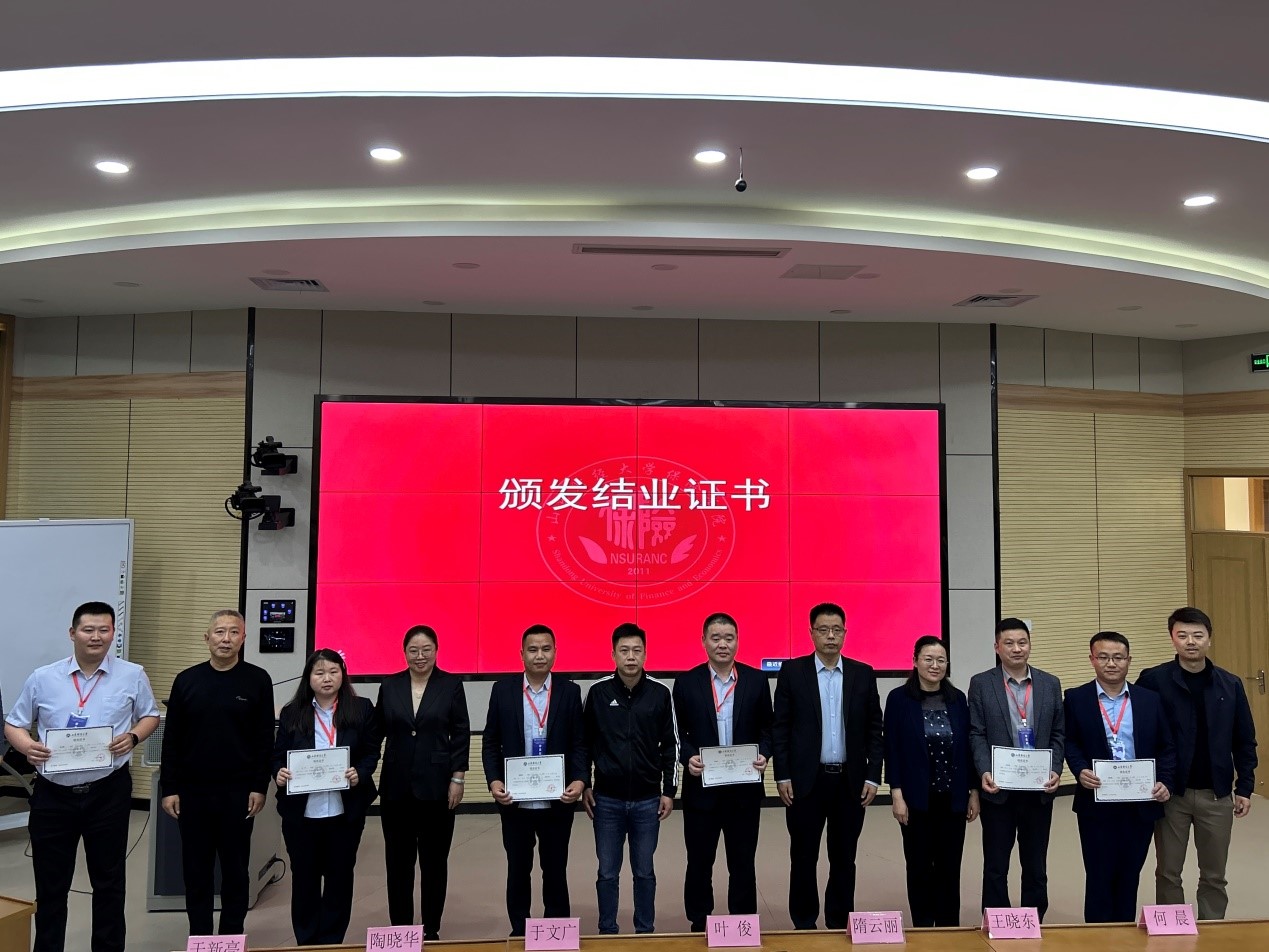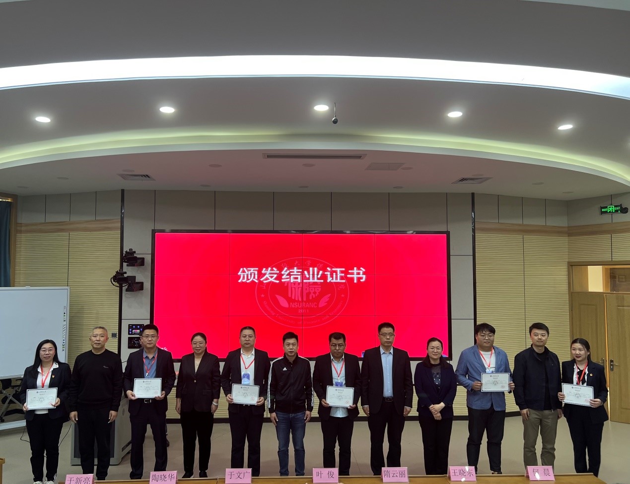 2023年4月14日下午,禁漫 举办的永安财产保险股份有限公司山东分公司“齐鲁新锐” 第一期英才培训圆满结课。50名培训班学员在为期5天的培训过程中系统性学习了包括二十大会议精神学习与解读、中国宏观经济形势、各类保险理论专业课和团队建设领导力培养等课程,并顺利通过结课考试,获得由禁漫 颁发的结业证书。永安财产保险股份有限公司山东分公司负责人、党委副书记叶俊,副总经理、党委书记隋云丽,副总经理、党委委员王晓东,总经理助理、纪委书记、党委委员何晨,禁漫 院长于文广,党委副书记陶晓华,以及本期培训班全体50名学员参加仪式。仪式由禁漫 副院长于新亮主持。