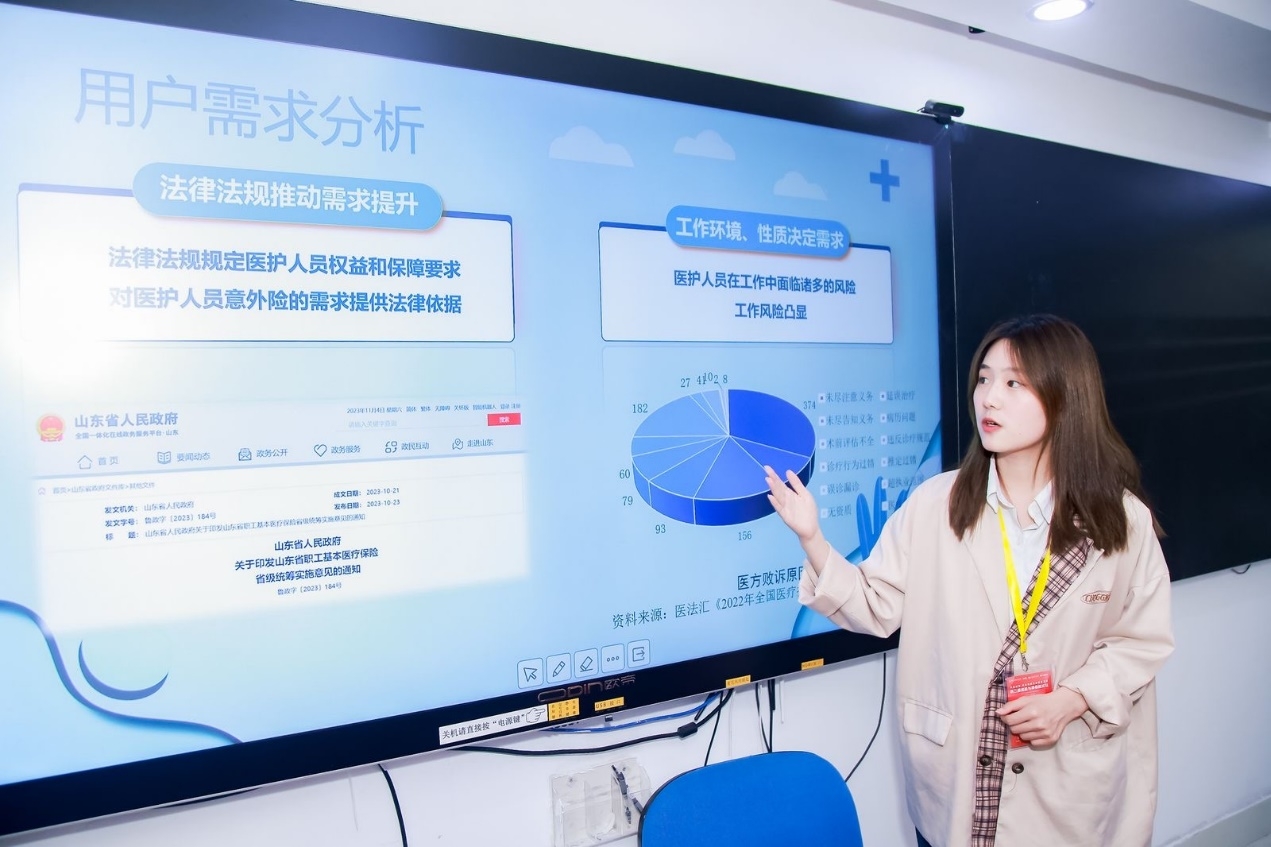 学生竞赛环节,来自禁漫 保险学(保险投资方向)专业的郭佳佳和精算学专业的粱茗荃同学展示了各自代表团队的保险产品设计,分别获得全国大学生保险产品(暨案例)大赛二等奖和三等奖。
