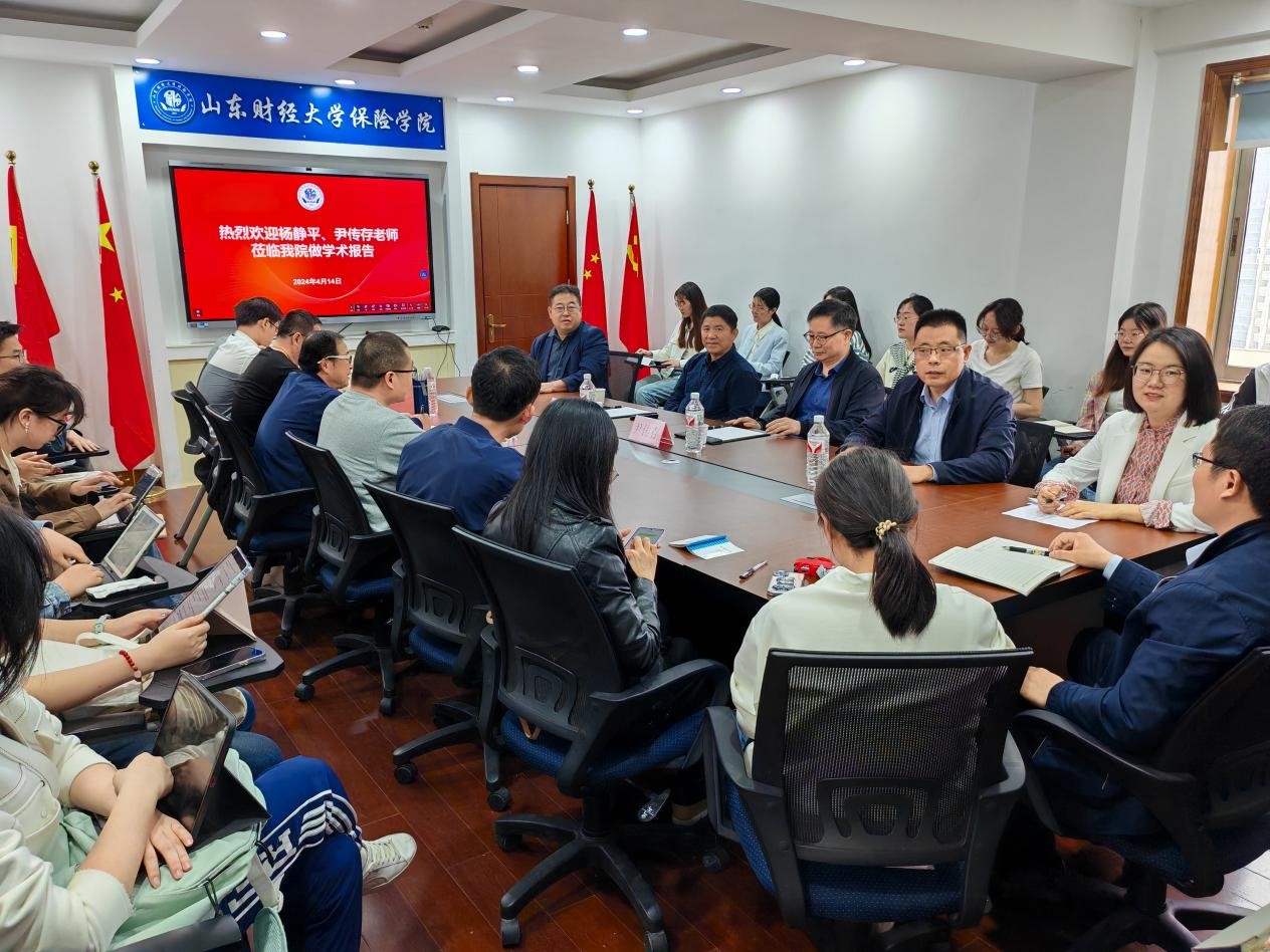 4月14日上午,由禁漫 和统计与数学学院联合主办的“德华安顾人寿”第十五期名家讲堂在舜耕校区办公楼禁漫 1108会议室成功举办。本期名家讲堂特邀北京大学杨静平教授和曲阜师范大学尹传存教授莅临禁漫 做学术报告。会议由统计与数学学院院长安起光教授、禁漫 院长于文广教授主持,院长助理范红丽教授和30余名师生参加讲座。