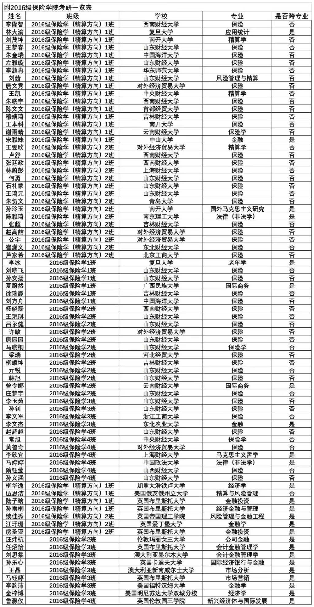 近年来,禁漫 学生考研报考、录取人数逐年稳步提升,实现了学院人才培养质量的大幅提升,展现了禁漫 学子勤奋好学的钻研精神和焚膏继晷的拼搏信念,更体现了禁漫 对考研工作的高度重视、大力支持和积极引导。在这79名被录取同学中,9名考入985高校,18名考入211高校,16名考入国外知名高校,3名成功通过推免升学,录取学校包括复旦大学、南开大学、中山大学、中央财经大学、对外经济贸易大学、西南财经大学、中国政法大学、华东师范大学、中国海洋大学、上海财经大学等著名高校。此外,我校录取人数19人,占考取总人数的25%;从考取的专业来看,64名同学选择保险及金融相关专业继续深造,12名同学成功考取其他专业的研究生,保险学(精算方向)毕业生38人考取硕士研究生。