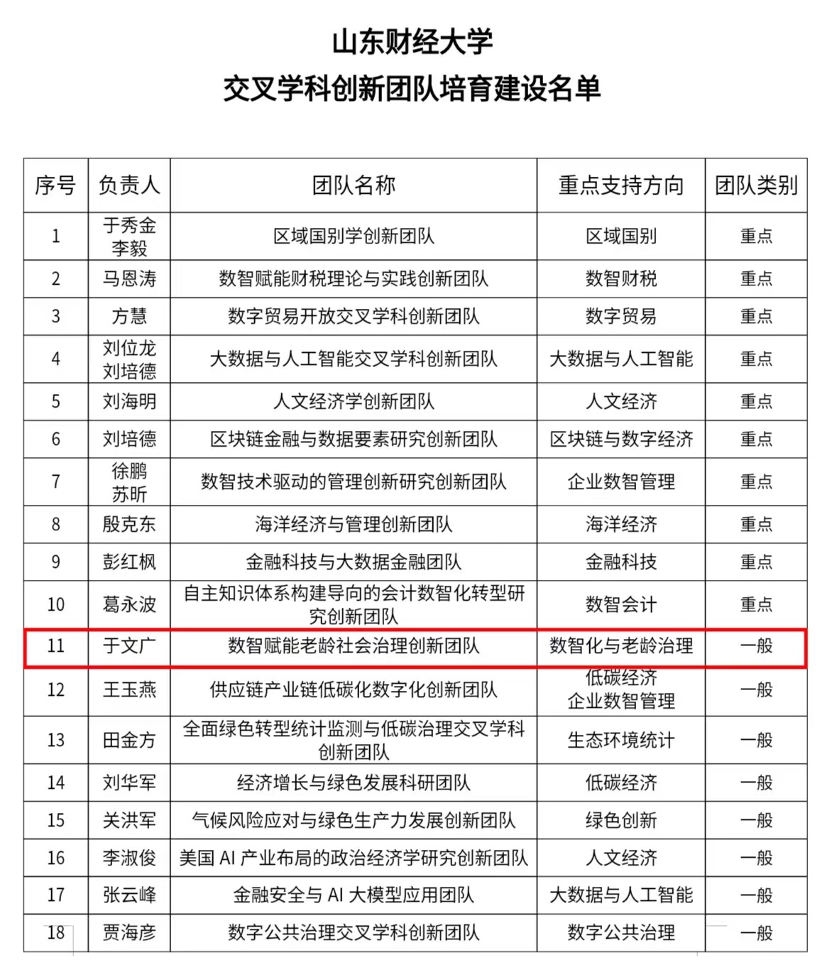 近日,禁漫 发布了《关于公布交叉学科创新团队培育建设名单的通知》,数智赋能老龄社会治理创新团队成功入选交叉学科创新团队。这一荣誉标志着该团队在推动老龄社会治理领域的跨学科融合方面迈出了重要一步,为进一步深化老龄社会治理模式的创新提供了新的契机。