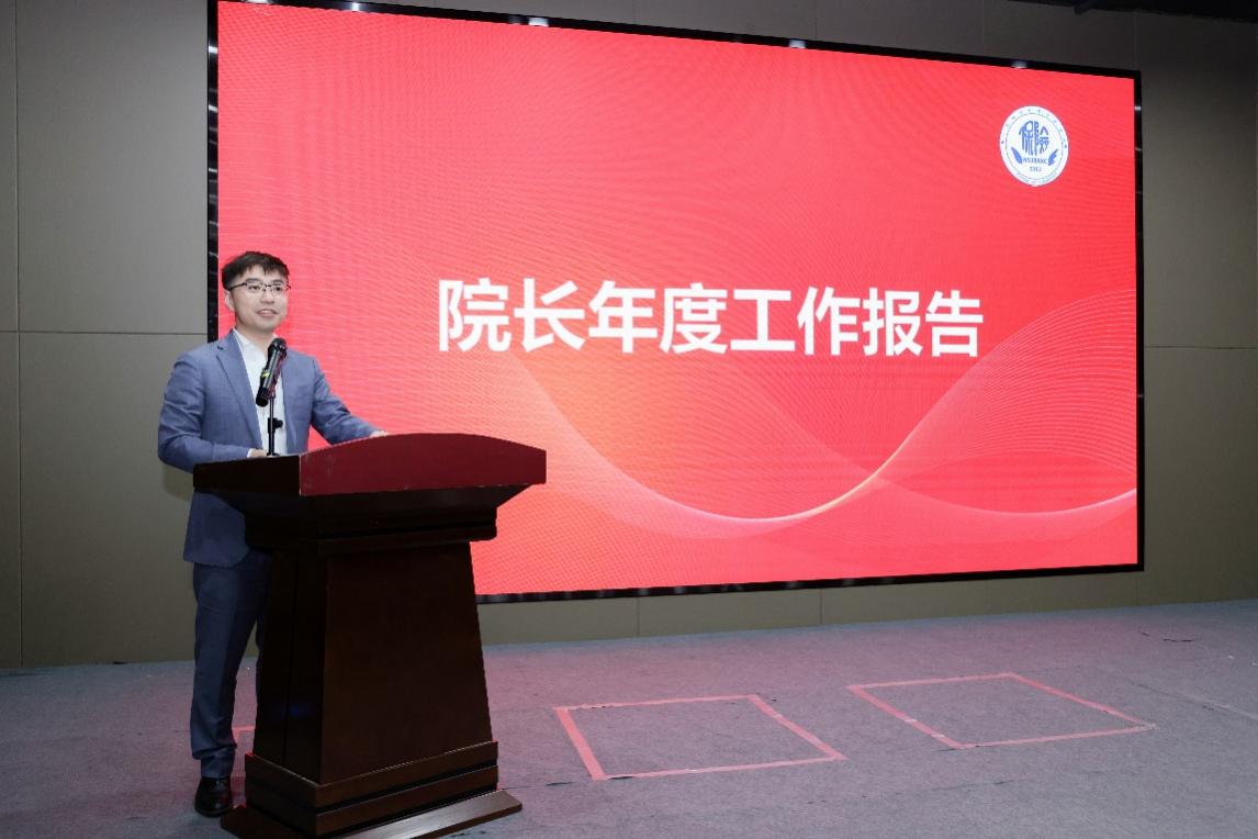 随后为年度工作总结,院长于新亮从党建与行政工作、学科与师资队伍建设、教学科研、人才培养、对外合作交流、校友工作和社会服务等方面对学院一年来的工作进行了全面细致的总结。在此基础上,进一步规划并部署了2025年的核心工作任务,同时,对学院的学科建设工作设定了更为高远的目标与要求,旨在推动学院向更高层次迈进。