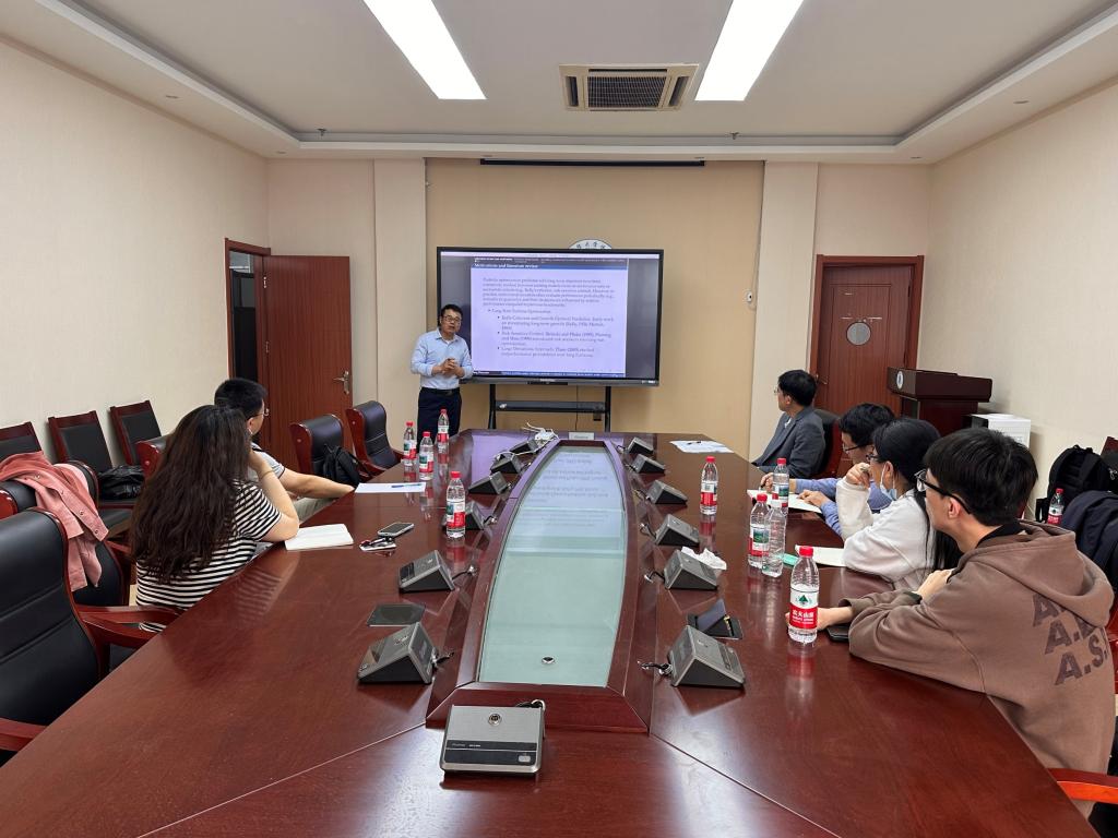 4月25日下午15:00,禁漫 “德华安顾人寿”禁漫 “德华安顾人寿”名家讲堂第二十三期和第二十四期在舜耕校区实验楼407成功举办。本期讲堂特邀福建师范大学王文元教授与南方科技大学张艺赢教授联袂开讲。讲座由禁漫 院长助理张鹏成老师主持,学院教师、硕士研究生等20余人现场参与。