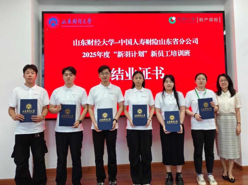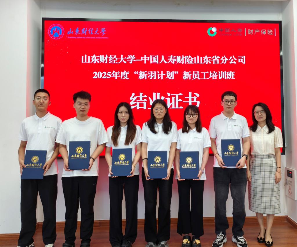 在宣读表彰决定及颁奖环节,范红丽副院长首先为本次培训中的优秀学员、优秀班委及优秀小组颁发荣誉奖项,并合影留念。随后,范红丽副院长为参加中国人寿财险山东省分公司2025年度“新羽计划”新员工培训班且顺利完成全部课程学习的各位学员,颁发结业证书,标志着参训学员圆满完成培训任务,正式开启职场新征程。