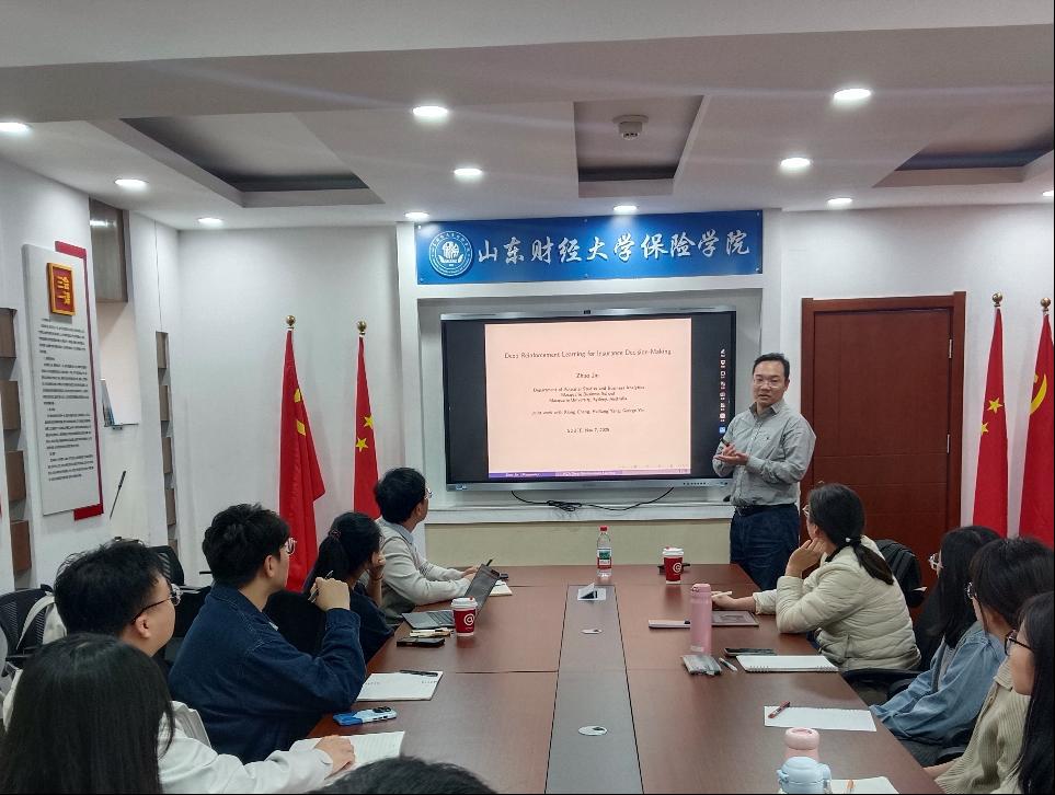 金教授立足行业发展趋势,从理论框架到实践路径,系统解析了深度强化学习如何赋能保险决策优化,为师生构建了从算法原理到行业应用的知识桥梁,现场交流气氛热烈,反响良好。
