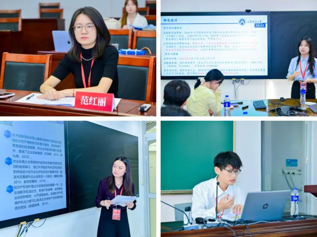 学术平行论坛中,范红丽与硕士研究生麻睿欣、赵子玉合作的论文《科技保险能否激励企业创新?——来自中国上市公司的经验证据》,刘素春与硕士生周桐、张家豪、李存宝合作的论文《农业保险发展水平对农业碳生产率的影响研究》,以及王霞与硕士生李晨曦合作的论文《城镇职工基本养老保险缴费率降低对企业ESG表现的影响研究》入选会议并作精彩汇报。