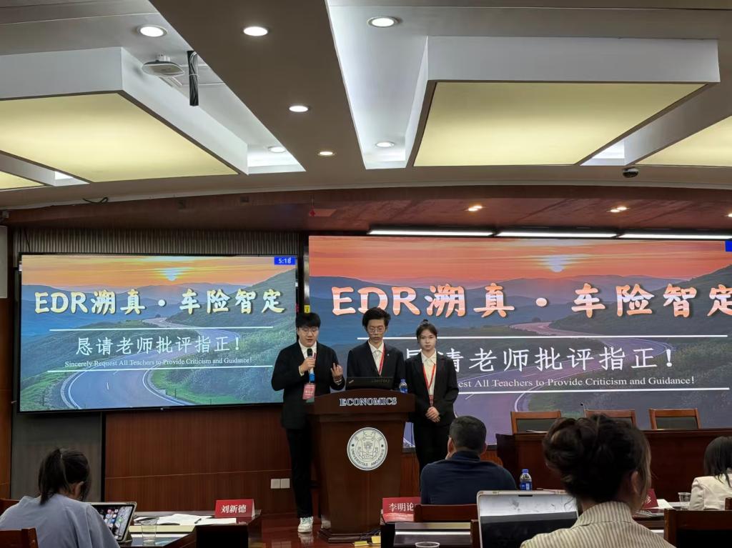 范红丽受邀担任学生保险产品设计比赛评委,对参赛作品进行了专业评审与细致指导。本科生王玉欣、王鼎霖、李大宇的作品《EDR溯真·车险智定——基于EDR数据融合的汽车保险动态定价模型构建与实证研究》荣获二等奖。