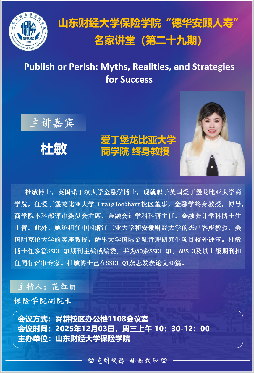 禁漫 “德华安顾人寿”名家讲堂(第二十九期),12月3日,10:30,报告人:杜敏