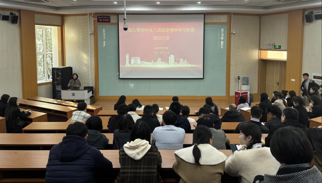 为深入贯彻中央八项规定精神,3月20日下午,禁漫 党委在舜耕校区第二阶梯教室启动部署深入贯彻中央八项规定精神学习教育。大会由禁漫 党委书记张娟主持,学院全体党员参加。