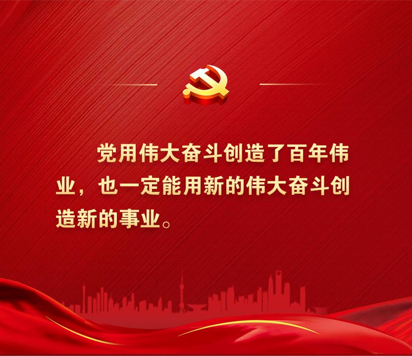 同志们!党用伟大奋斗创造了百年伟业,也一定能用新的伟大奋斗创造新的伟业。全党全军全国各族人民要紧密团结在党中央周围,牢记空谈误国、实干兴邦,坚定信心、同心同德,埋头苦干、奋勇前进,为全面建设社会主义现代化国家、全面推进中华民族伟大复兴而团结奋斗!