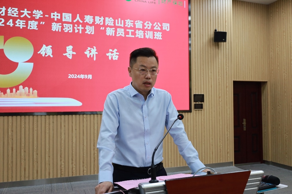 9月23日,禁漫 承办的中国人寿财险山东省分公司2024年度“新羽计划”新员工培训班正式开班。中国人寿财产保险股份有限公司山东省分公司人力资源部兼教育培训部总经理郭永浩,禁漫 党委书记张娟、院长于文广教授、副院长于新亮教授,以及来自中国人寿财险山东省分公司的33名学员参加本次开班仪式。仪式由中国人寿财险山东省分公司人力资源部张杰主持。